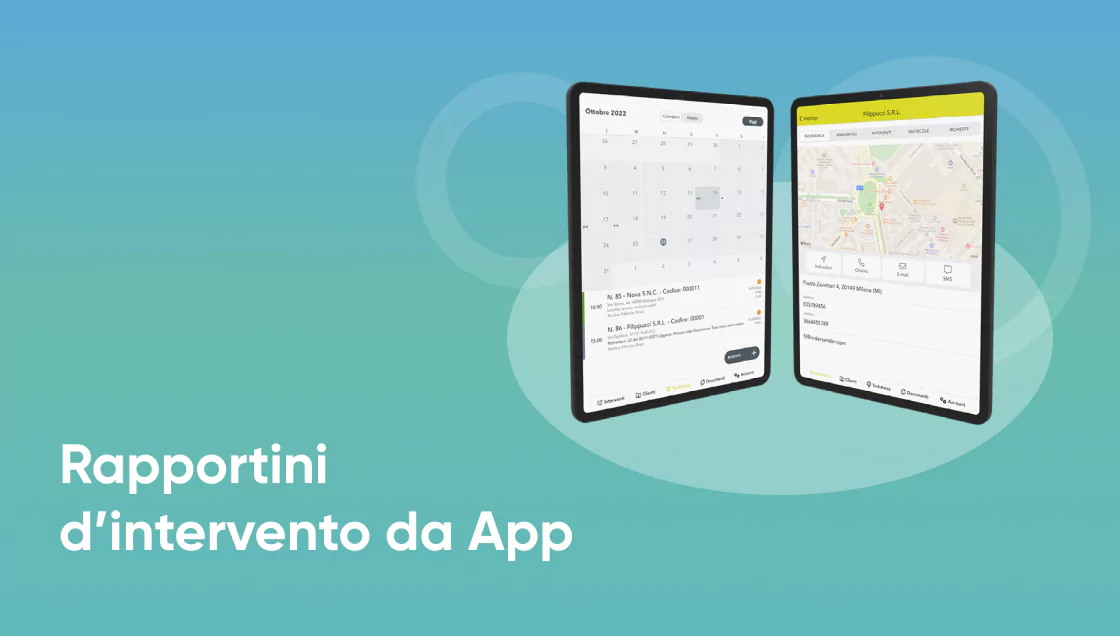 Sul campo, il personale tecnico gestisce ogni attività da Smartphone e Tablet, iOS e Android, anche offline, senza connessione a Internet. Accedendo all’App con le sue credenziali, l’operatore tecnico può gestire gli appuntamenti, visualizzare a calendario gli interventi conclusi e programmati, geolocalizzare i clienti sulla mappa, gestire e creare gli interventi tecnici completi di ogni info, fino alla creazione, firma e invio dei rapportini.